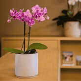 Perfetta come soprammobile decorativo o centrotavola, questa Phalaenopsis si adatta a qualsiasi stile d’arredo, arricchendo ogni spazio con la sua delicatezza floreale. Ideale sia come regalo speciale, sia come dettaglio raffinato per la tua casa, la sua presenza porterà un’atmosfera elegante e ricca di emozione.