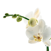 La Phalaenopsis "Nottingham" incanta con la sua straordinaria fioritura prolungata e il suo aspetto sofisticato. I suoi petali bianchi traslucidi, impreziositi da un tocco di giallo delicato al centro, donano un’eleganza senza pari, perfetta per chi cerca una pianta di classe e grande impatto visivo.